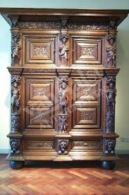 Antwerp was a centre for the production of large items of fitted and non fitted furniture, two-stage cupboards, the upper stage recessed and supported on caryatids and with the panels of the doors inlaid with intarsia trompe l'oeil perspectives of buildings; of single-stage cupboards or sideboards derived from the Italian credenza but rather more chunky in proportion, well carved in solid oak and with ringed, Tuscan columns at the corners; and of cabinets with doors enclosing numerous small drawers, their fronts veneered in ebony or painted with mythological or biblical subjects. These were exported all over Europe.